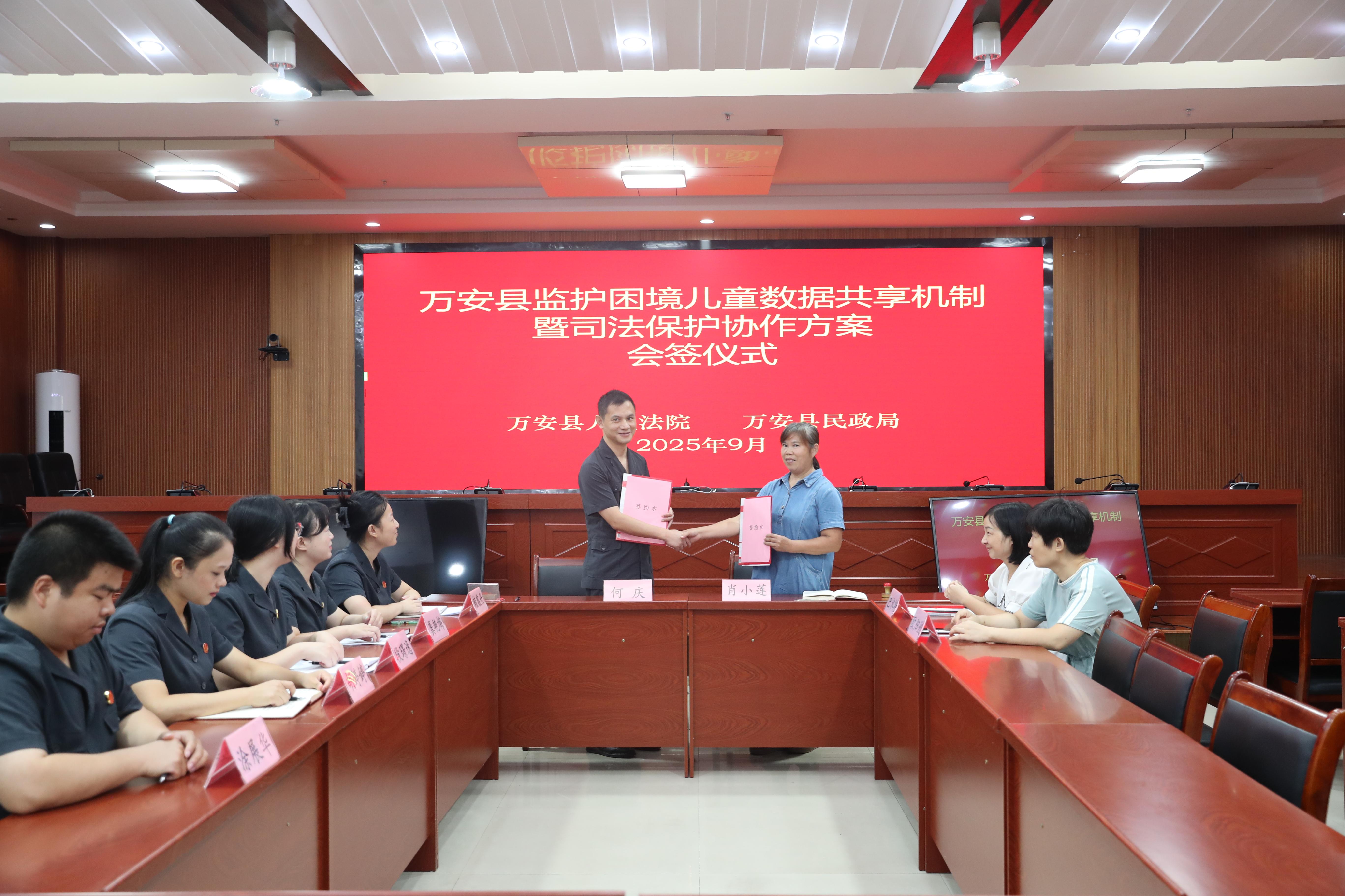 近日,江西省萬安縣人民法院與縣民政局舉行“萬安縣監(jiān)護(hù)困境兒童數(shù)據(jù)共享機(jī)制”簽約儀式,為從源頭上預(yù)防兒童陷入監(jiān)護(hù)困境,對可能存在監(jiān)護(hù)缺失、監(jiān)護(hù)不當(dāng)情形的兒童給予有效的監(jiān)護(hù)救濟(jì)提供制度保障。