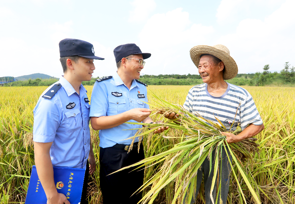 秋收時節(jié),稻谷飄香。江西省分宜縣公安局雙林派出所立足轄區(qū)農業(yè)生產實際,深耕“田間警務”模式,組織民輔警深入田間地頭,了解治安狀況,摸排矛盾糾紛,宣傳安全知識,幫助群眾解決急難愁盼問題,以實際行動護航秋收好“豐”景。