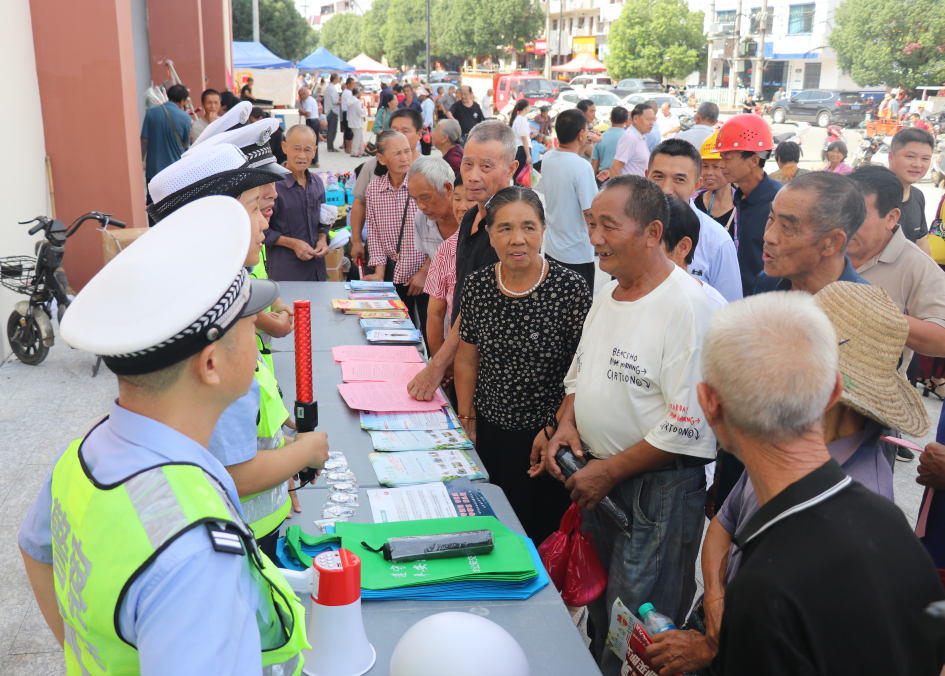 圖為9月29日,民警走進(jìn)白舍鎮(zhèn)白舍農(nóng)貿(mào)市場(chǎng)向群眾宣講交通安全知識(shí)。