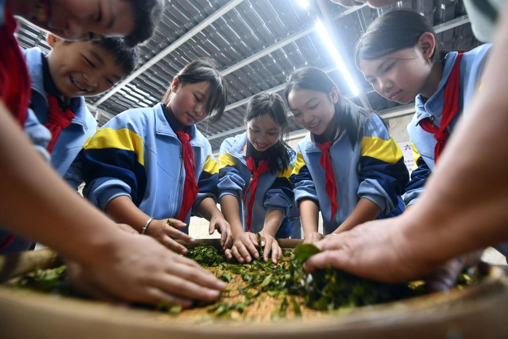 2024年12月3日,學(xué)生們?cè)趶V西梧州市蒼梧縣六堡鎮(zhèn)塘平小學(xué)學(xué)習(xí)制作六堡茶。廣西六堡茶已有1500多年的歷史,其制作工藝被列入第四批國(guó)家級(jí)非物質(zhì)文化遺產(chǎn)代表性項(xiàng)目名錄。近年來(lái),廣西圍繞打造千億元茶產(chǎn)業(yè)發(fā)展目標(biāo),深入實(shí)施綠色高效茶園建設(shè)、品牌提升和營(yíng)銷(xiāo)體系建設(shè)、產(chǎn)業(yè)融合和茶文化提升等多項(xiàng)工程,形成了以六堡茶為引擎,早春茶等特色優(yōu)勢(shì)茶協(xié)同發(fā)展的產(chǎn)業(yè)格局,茶產(chǎn)業(yè)煥發(fā)勃勃生機(jī)。六堡茶正沿21世紀(jì)海上絲綢之路運(yùn)達(dá)八方,香飄海內(nèi)外。2024年,廣西六堡茶產(chǎn)量達(dá)到4.3萬(wàn)噸,綜合產(chǎn)值超300億元。