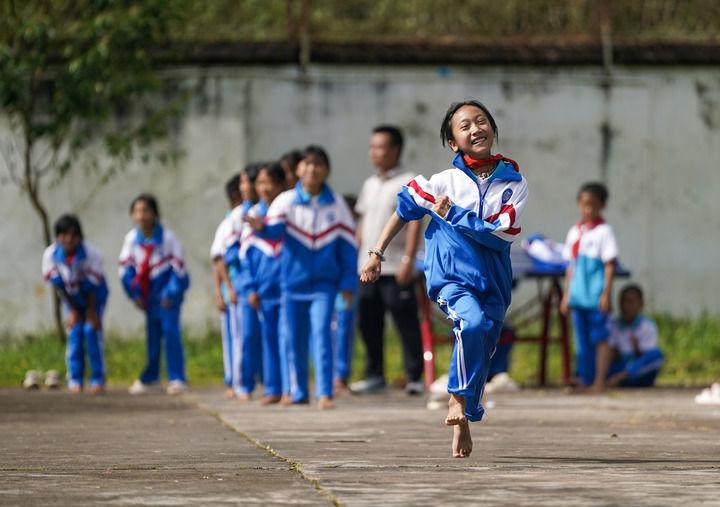 2025年9月15日,云南省普洱市孟連傣族拉祜族佤族自治縣臘福小學(xué)學(xué)生課間在操場進行奔跑接力比賽。新華社記者 陳欣波 攝
