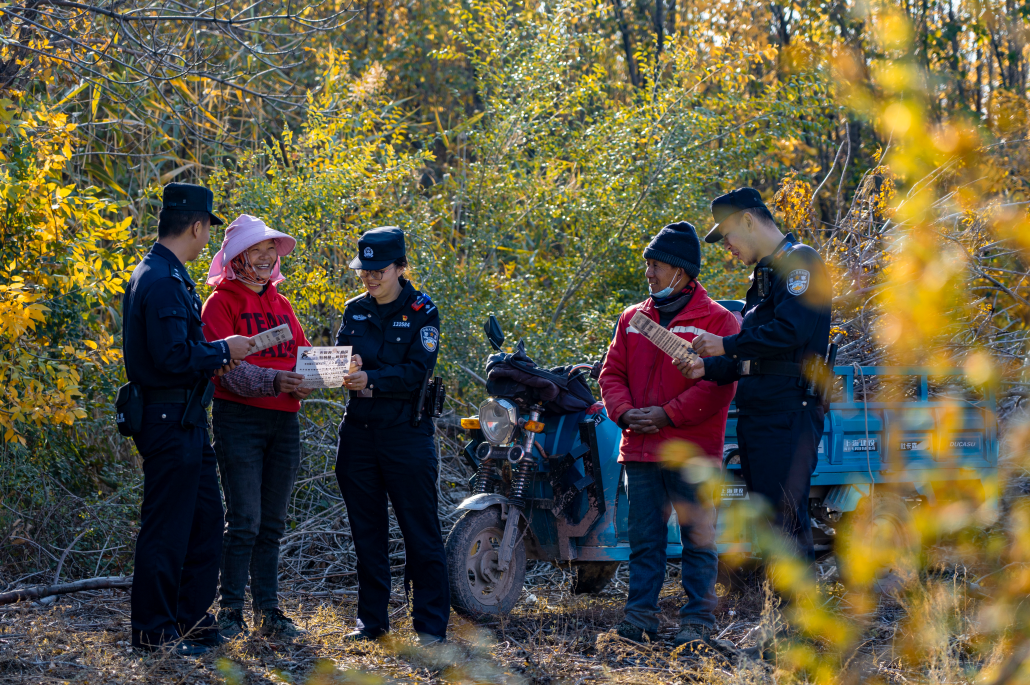 10月11日,烏魯木齊鐵路公安處石河子站派出所民警深入鐵路沿線(xiàn),在秋色中與轉(zhuǎn)場(chǎng)牧民及周邊居民談收成、嘮家常,宣傳鐵路安全與反詐知識(shí),并提醒大家天干物燥注意安全用火用電,以防火災(zāi)風(fēng)險(xiǎn),筑牢安全防線(xiàn)。