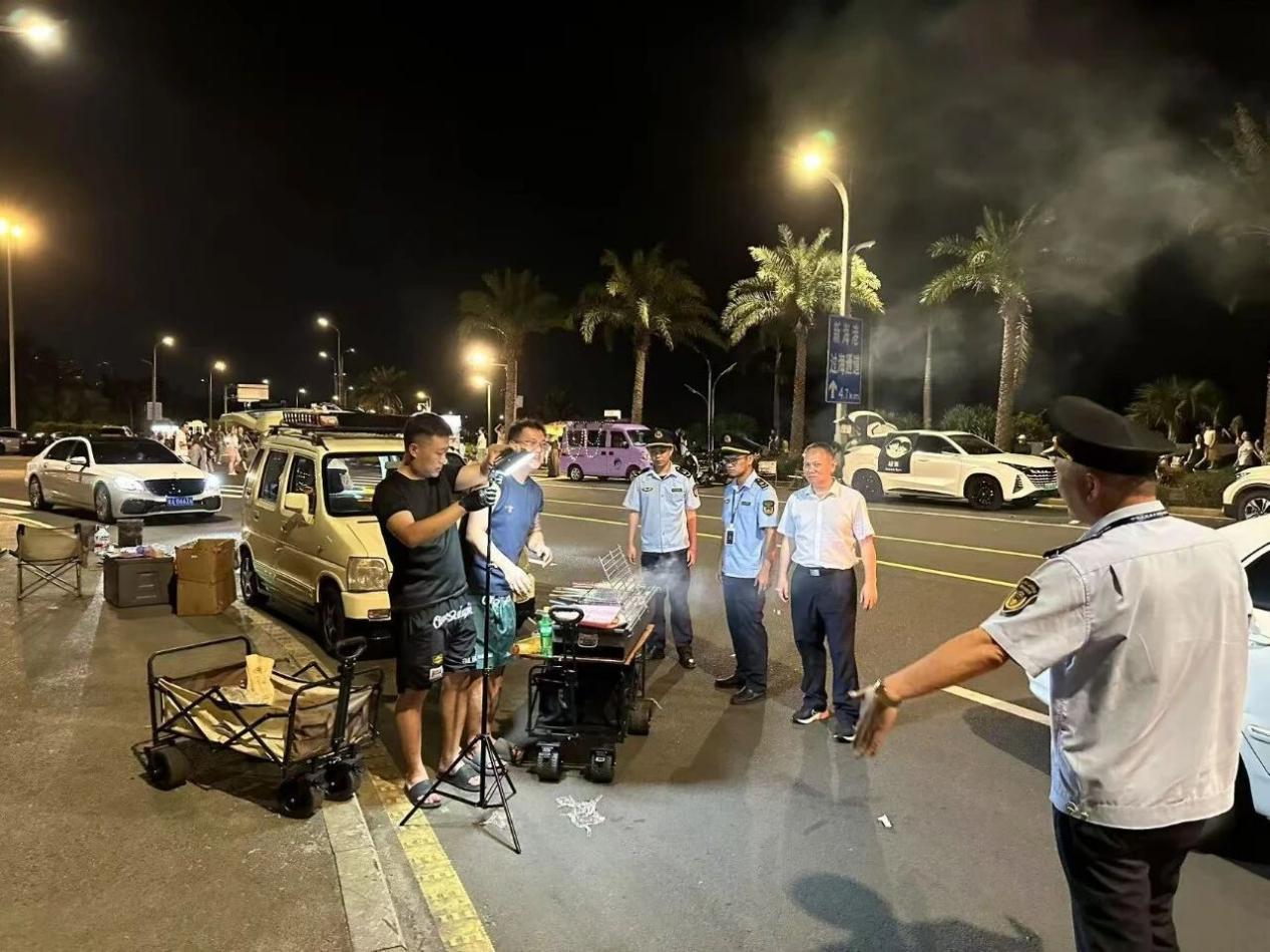 為進一步規(guī)范管理流動攤販占道經(jīng)營秩序,消除道路交通安全隱患,針對西海岸片區(qū)占道經(jīng)營以及夜間露天燒烤及出店經(jīng)營等問題,城市管理行政執(zhí)法大隊、海秀街道辦綜合行政執(zhí)法中隊、長流鎮(zhèn)綜合行政執(zhí)法中隊、西秀鎮(zhèn)綜合行政執(zhí)法中隊在西海岸周邊區(qū)域,集中開展夜間執(zhí)法檢查。