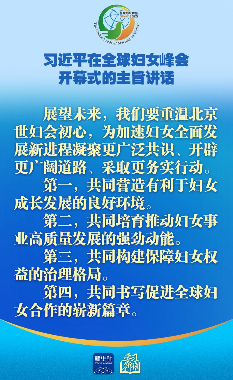 10月13日上午,國家主席習近平在北京國家會議中心出席全球婦女峰會開幕式并發(fā)表題為《弘揚北京世婦會精神 加速婦女全面發(fā)展新進程》的主旨講話。講話金句,一起學習!