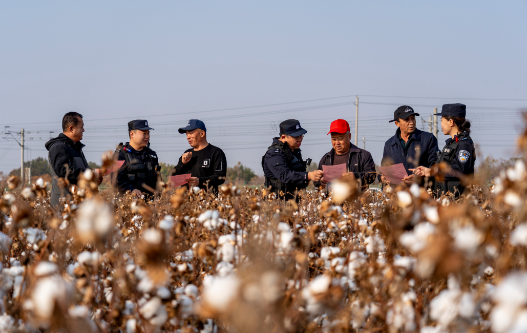 正值新疆棉花豐收季,10月21日,烏魯木齊鐵路公安處呼圖壁站派出所組織民警深入轄區(qū)棉花地與軋花場向棉農(nóng)宣傳愛路護(hù)路及消防安全知識(shí),筑牢棉區(qū)安全防線。