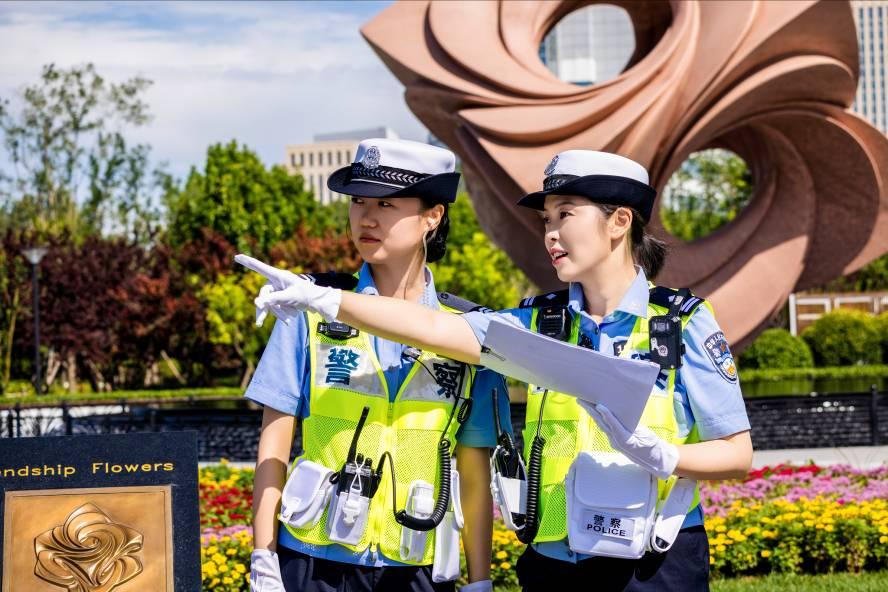 圖為連捷(右)上合峰會期間調(diào)研路口情況,設(shè)置疏導(dǎo)方案。
