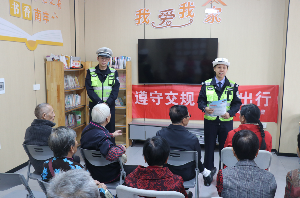 圖為10月27日,民警走進(jìn)南豐縣琴臺(tái)路社區(qū)為老人宣講交通安全知識(shí),并提供便民服務(wù)。