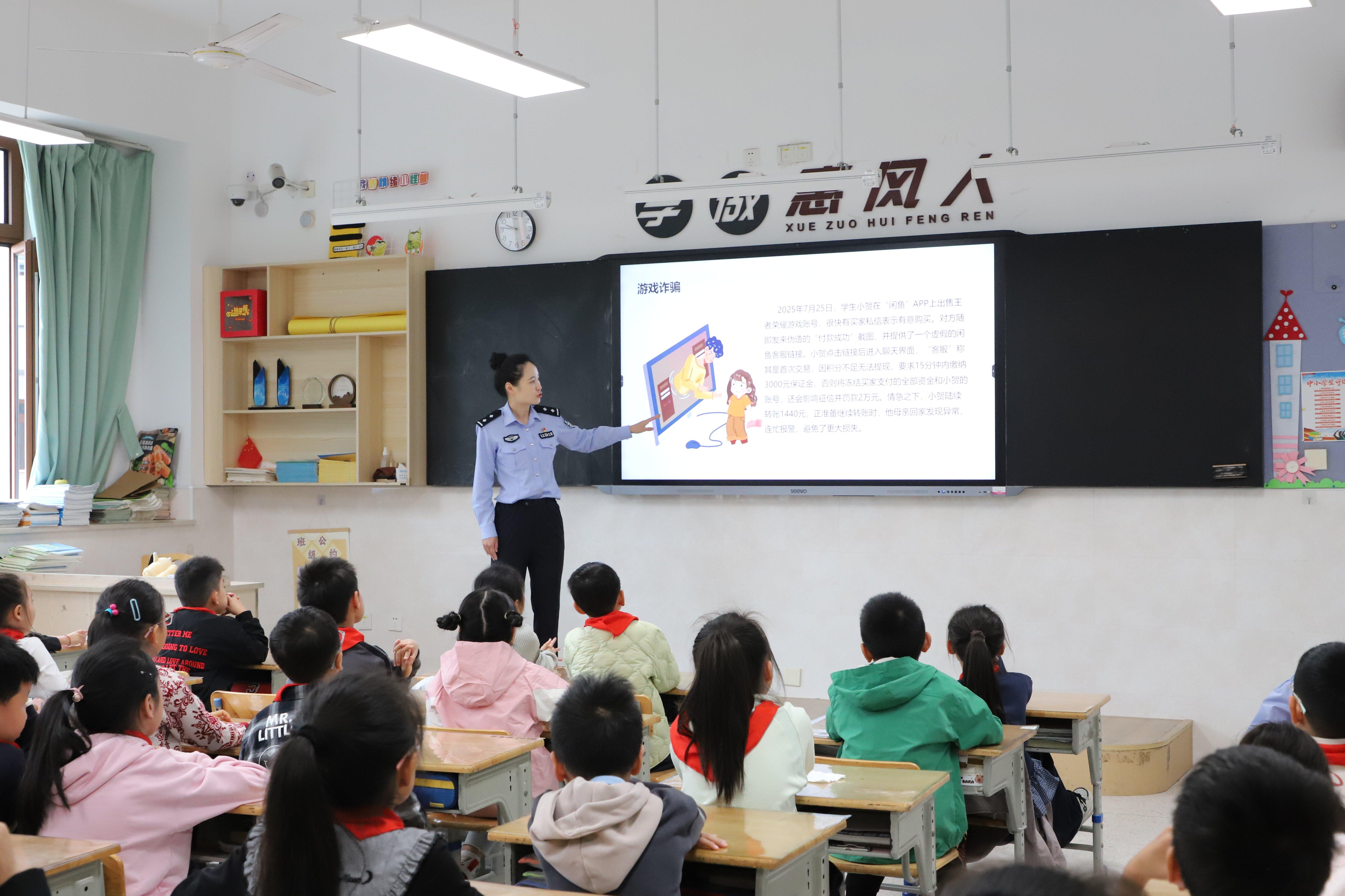 警徽撞上童真,安全知識(shí)配上趣味互動(dòng),應(yīng)麟書院小學(xué)三年級(jí)的安全課堂也太熱鬧啦!10月30日上午,浙江省寧波市公安局鄞州區(qū)五鄉(xiāng)派出所民警朱麗霞受邀來(lái)上課,用孩子們喜歡的方式,筑牢校園安全防護(hù)墻。