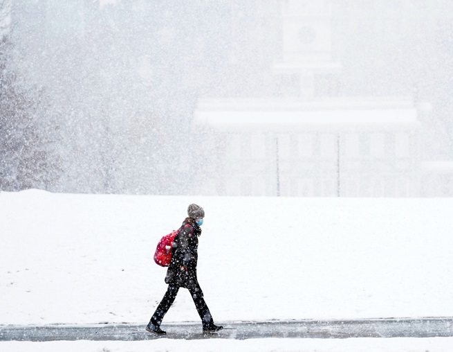 當(dāng)?shù)貢r(shí)間2月22日,美國(guó)費(fèi)城,當(dāng)?shù)赜瓉?lái)冬季強(qiáng)風(fēng)暴,整個(gè)城市被積雪覆蓋。(圖片來(lái)源:東方IC)