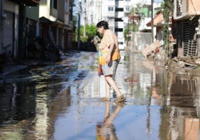 10月12日,在墨西哥韋拉克魯斯州波薩里卡,一名婦女走過泥濘積水的街道。新華社發(fā)(弗朗西斯科·卡涅多攝)
