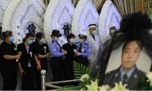 時(shí)值仲夏,通往陜西省興平市殯儀館道路兩旁站滿(mǎn)了戰(zhàn)友和群眾,送別民警陳勇。