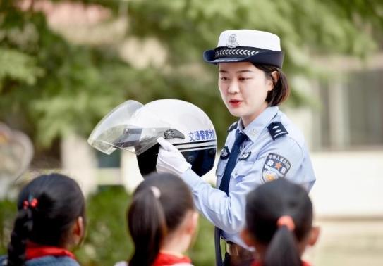 3月27日,江蘇省常州市公安局武進分局交警走進校園,開展“一盔一帶”行動法治宣傳。 許正宏 攝