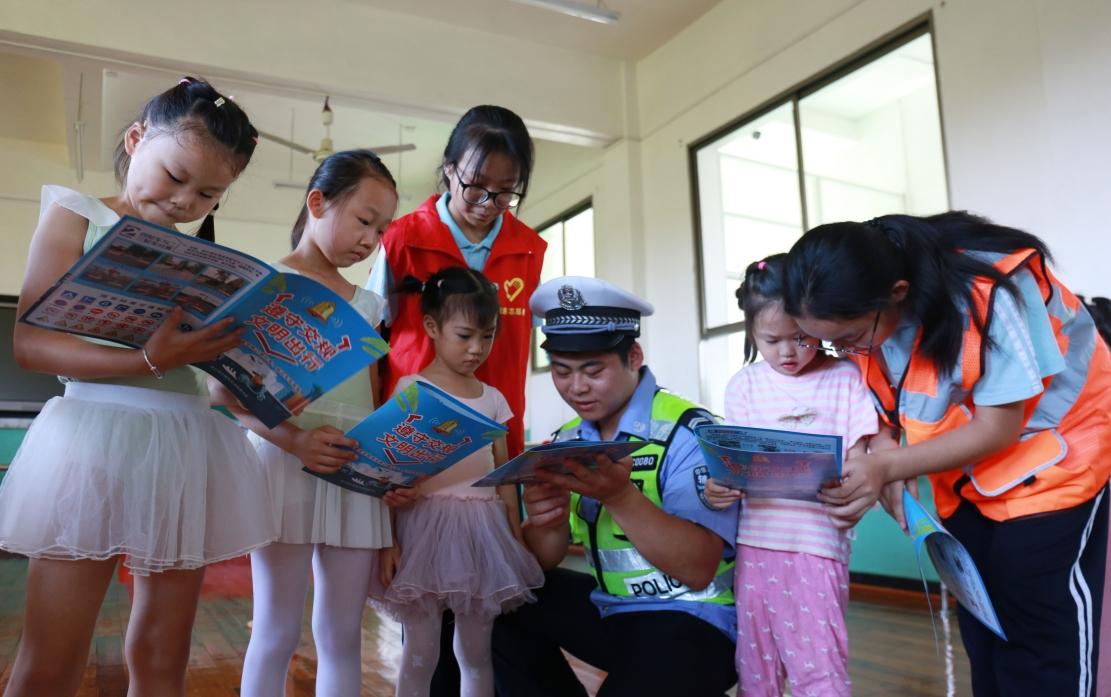 連日來,江西省吉安市遂川縣公安局交警大隊組織民警和青年志愿者走進轄區(qū)暑期興趣班,通過以案說法、知識問答等方式宣講交通安全知識,引導孩子們正確識別交通標志標線,提升自我保護能力。圖為7月23日,民警走進暑期興趣班宣講交通安全知識。