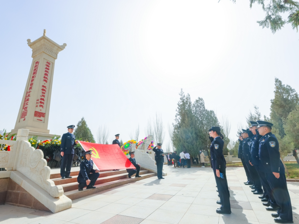 4月2日,新疆喀什邊境管理支隊(duì)組織民警前往疏勒縣烈士陵園祭奠英烈。民警懷著無限哀思獻(xiàn)花、掃墓、向英雄紀(jì)念碑敬獻(xiàn)鮮花,寄托對烈士的崇敬和思念。
