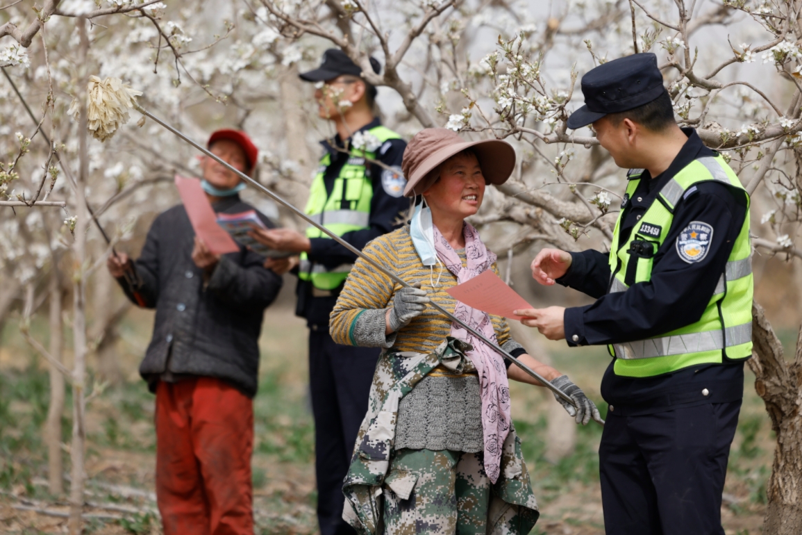 新疆庫爾勒市梨花盛開時(shí)節(jié),為進(jìn)一步增強(qiáng)轄區(qū)鐵路沿線居民對(duì)鐵路安全知識(shí)的了解,提高居民的愛路護(hù)路意識(shí)和自我保護(hù)能力,4月14日,庫爾勒鐵路公安處庫爾勒西站派出所民警在轄區(qū)香梨種植園廣泛開展鐵路安全知識(shí)宣傳。民警走村入戶,采用向村民及外來務(wù)工人員發(fā)放鐵路護(hù)路宣傳資料、現(xiàn)場講授等方式講解鐵路安全知識(shí),構(gòu)建良好的線路安全環(huán)境。