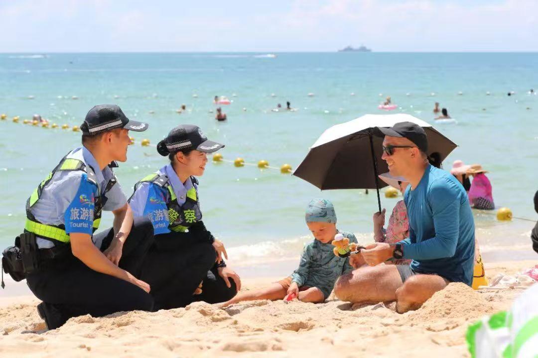“我們非常喜歡三亞,這里非常舒適、安全,我去了很多地方,服務(wù)都很好”。10月4日上午,大東海景區(qū),碧海藍(lán)天、椰林沙灘,美不勝收,俄羅斯籍游客正帶著孩子在大東海沙灘上玩耍,當(dāng)旅游警察陳玨用俄語向其宣傳旅游安全知識(shí)時(shí),這位外籍游客高興地說道。