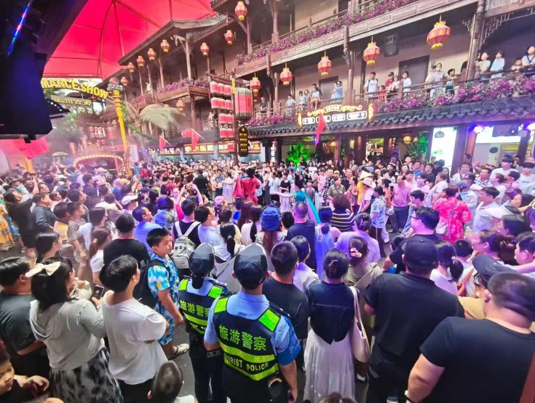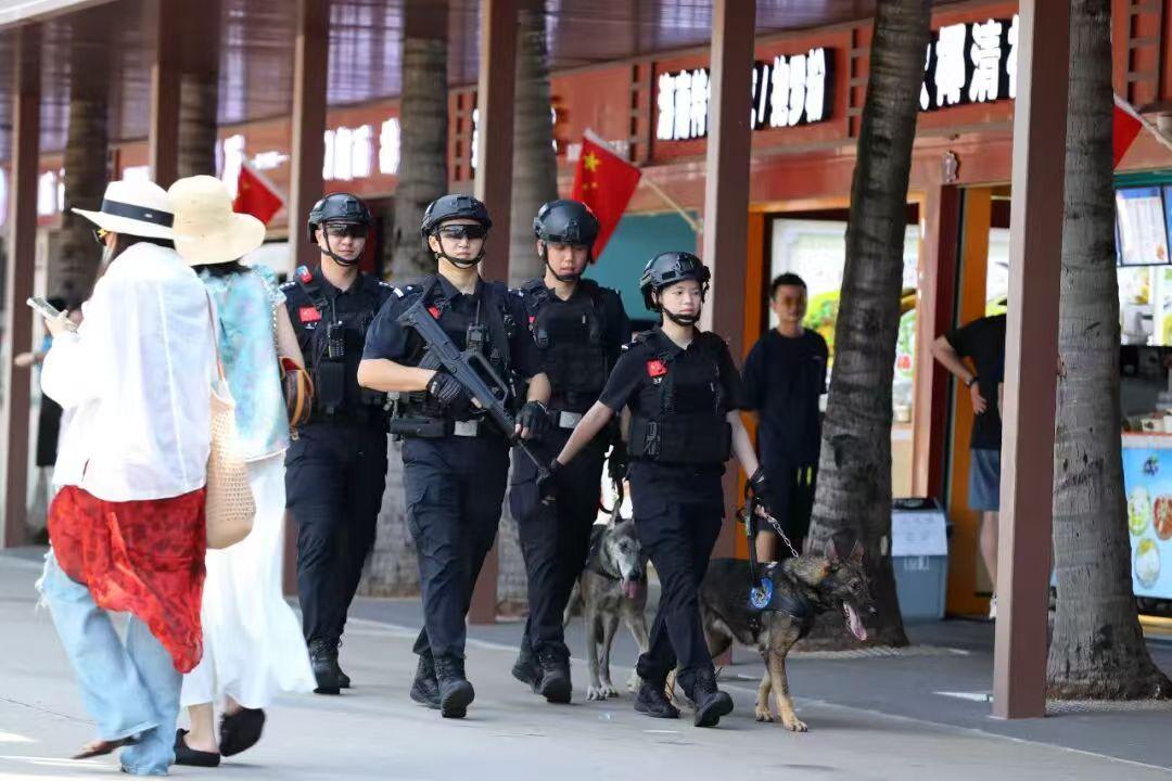 國慶假期,三亞公安全警動(dòng)員,全警皆旅警,特警、交警、治安警、旅游警察、機(jī)關(guān)警力等紛紛走上街頭、走進(jìn)景區(qū)…全時(shí)段全天候全區(qū)域開展巡邏防控、服務(wù)游客,守護(hù)市民游客安心出游、舒心度假。所到之處吸引了不少市民游客,特別是外籍游客的目光,大家紛紛駐足,合影打卡,三亞旅游警察成為炙手可熱的新晉打卡“警點(diǎn)”。