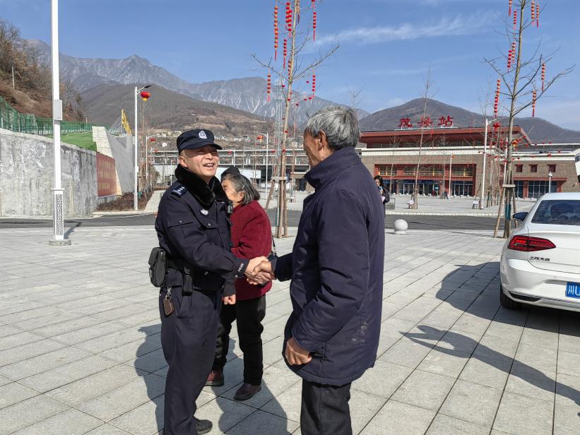 這樣的場景,在高鐵通車后屢見不鮮。為了確保站前以及周邊安全,茂縣公安成立了茂縣公安局富順派出所鐵路警務(wù)工作室,聯(lián)合特巡警開展站前巡邏、秩序維護以及巡線安全?!霸诂F(xiàn)有人員的基礎(chǔ)上,春節(jié)期間,我們派出所會隨時根據(jù)情況增派人手,保護群眾以及旅客的出行安全?!备豁樑沙鏊L趙全東說道。