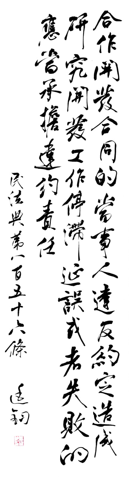 民法典第八百五十六條 合作開(kāi)發(fā)合同的當(dāng)事人違反約定造成研究開(kāi)發(fā)工作停滯、延誤或者失敗的,應(yīng)當(dāng)承擔(dān)違約責(zé)任。