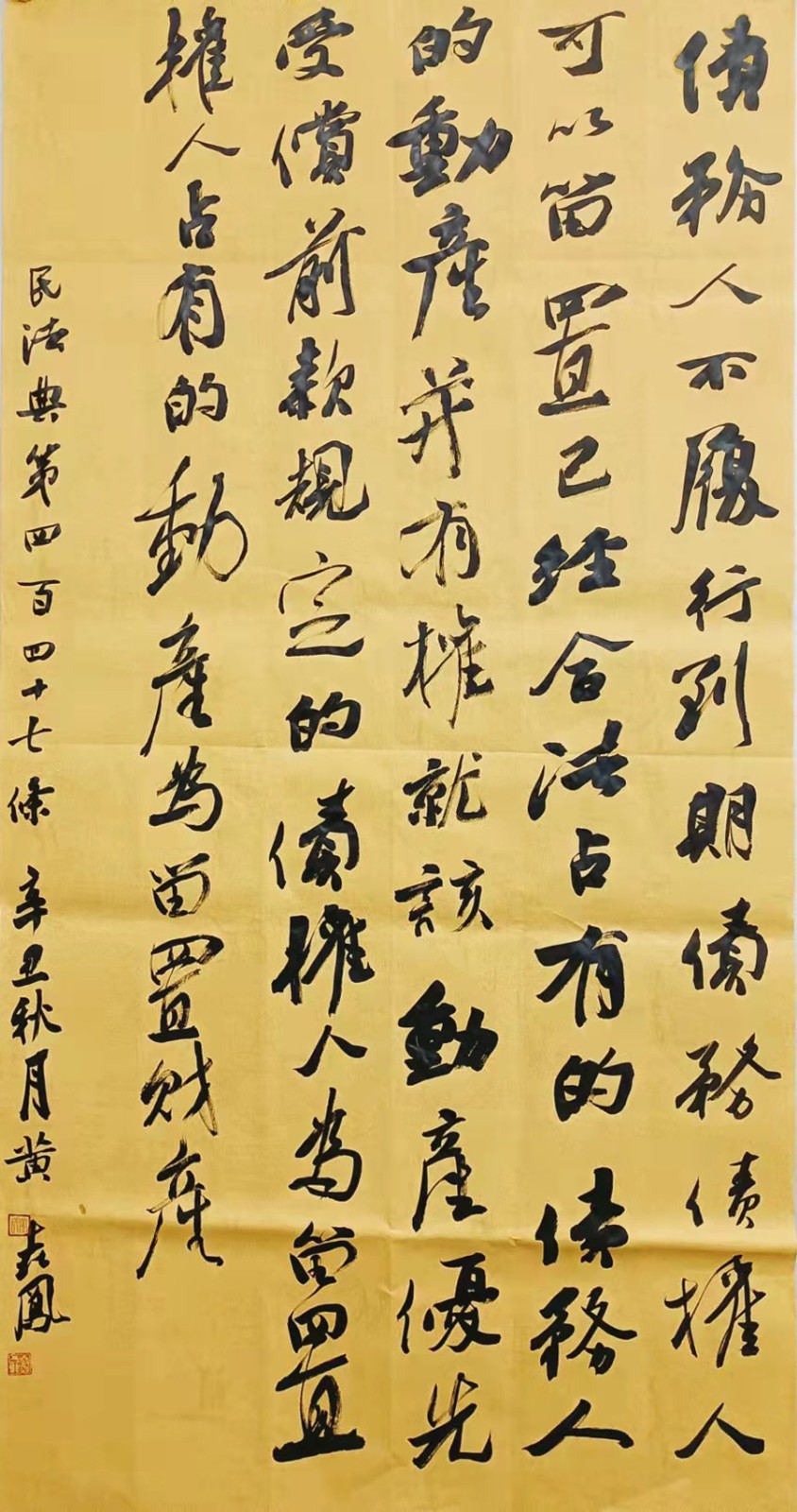 “書·法”活動(dòng)以書寫《中華人民共和國民法典》法條開筆,未來將對準(zhǔn)更多的法律。