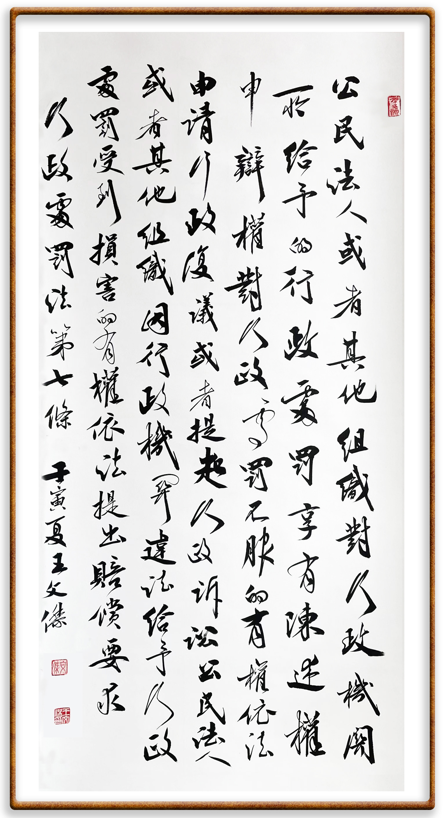 繼《中華人民共和國民法典》《中華人民共和國土地管理法》《中華人民共和國土地管理法實(shí)施條例》《中華人民共和國法律援助法》之后,法治日?qǐng)?bào)社聯(lián)合北京市司法局、北京書法家協(xié)會(huì),將筆端對(duì)準(zhǔn)《中華人民共和國憲法》和《中華人民共和國行政處罰法》。