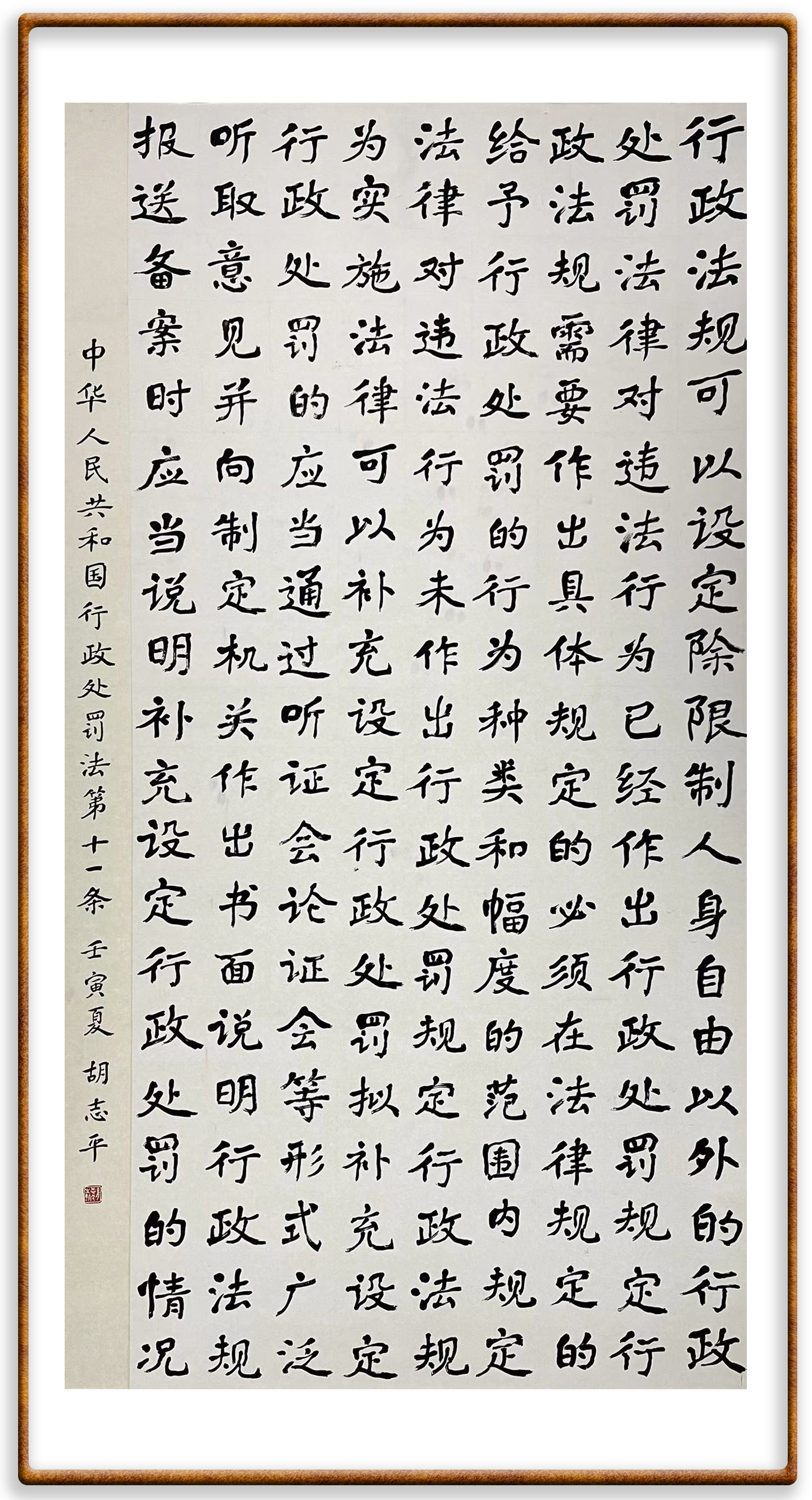 繼《中華人民共和國(guó)民法典》《中華人民共和國(guó)土地管理法》《中華人民共和國(guó)土地管理法實(shí)施條例》《中華人民共和國(guó)法律援助法》之后,法治日?qǐng)?bào)社聯(lián)合北京市司法局、北京書(shū)法家協(xié)會(huì),將筆端對(duì)準(zhǔn)《中華人民共和國(guó)憲法》和《中華人民共和國(guó)行政處罰法》。