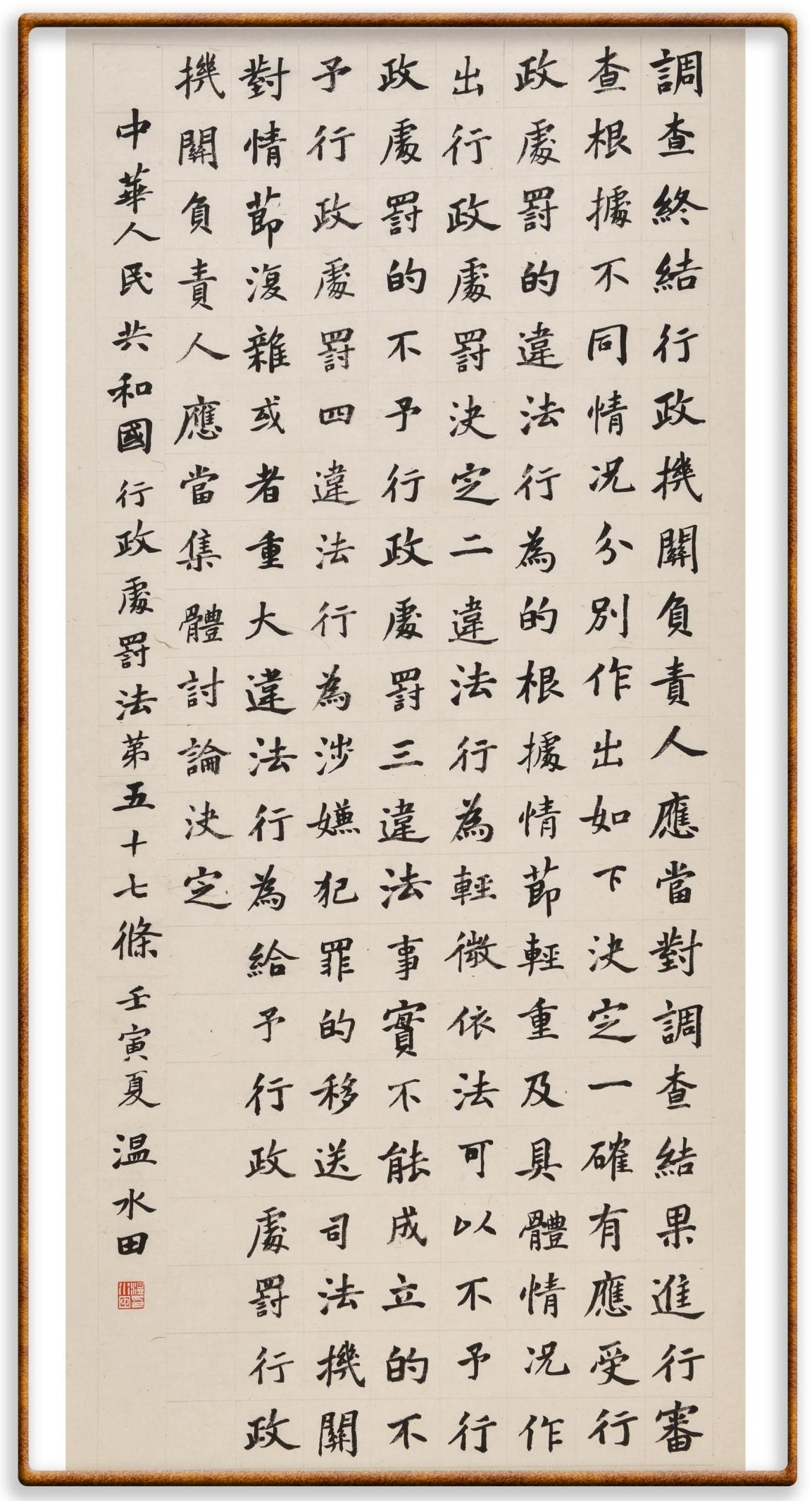 繼《中華人民共和國民法典》《中華人民共和國土地管理法》《中華人民共和國土地管理法實(shí)施條例》《中華人民共和國法律援助法》之后,法治日報(bào)社聯(lián)合北京市司法局、北京書法家協(xié)會,將筆端對準(zhǔn)《中華人民共和國憲法》和《中華人民共和國行政處罰法》。