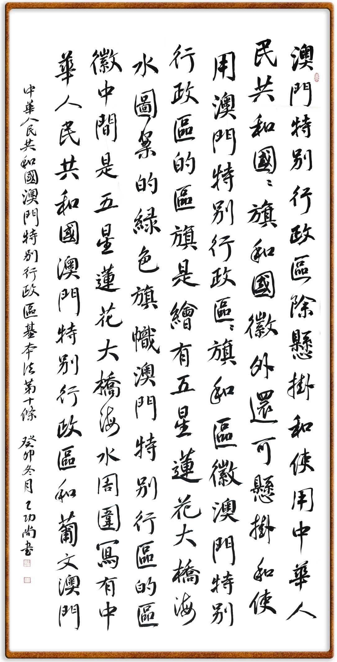 澳門(mén)基本法第十條 澳門(mén)特別行政區(qū)除懸掛和使用中華人民共和國(guó)國(guó)旗和國(guó)徽外,還可懸掛和使用澳門(mén)特別行政區(qū)區(qū)旗和區(qū)徽。