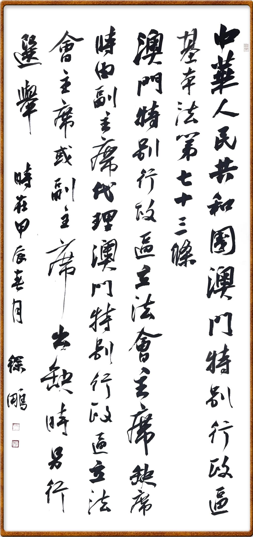 澳門基本法第七十三條 澳門特別行政區(qū)立法會主席缺席時由副主席代理。