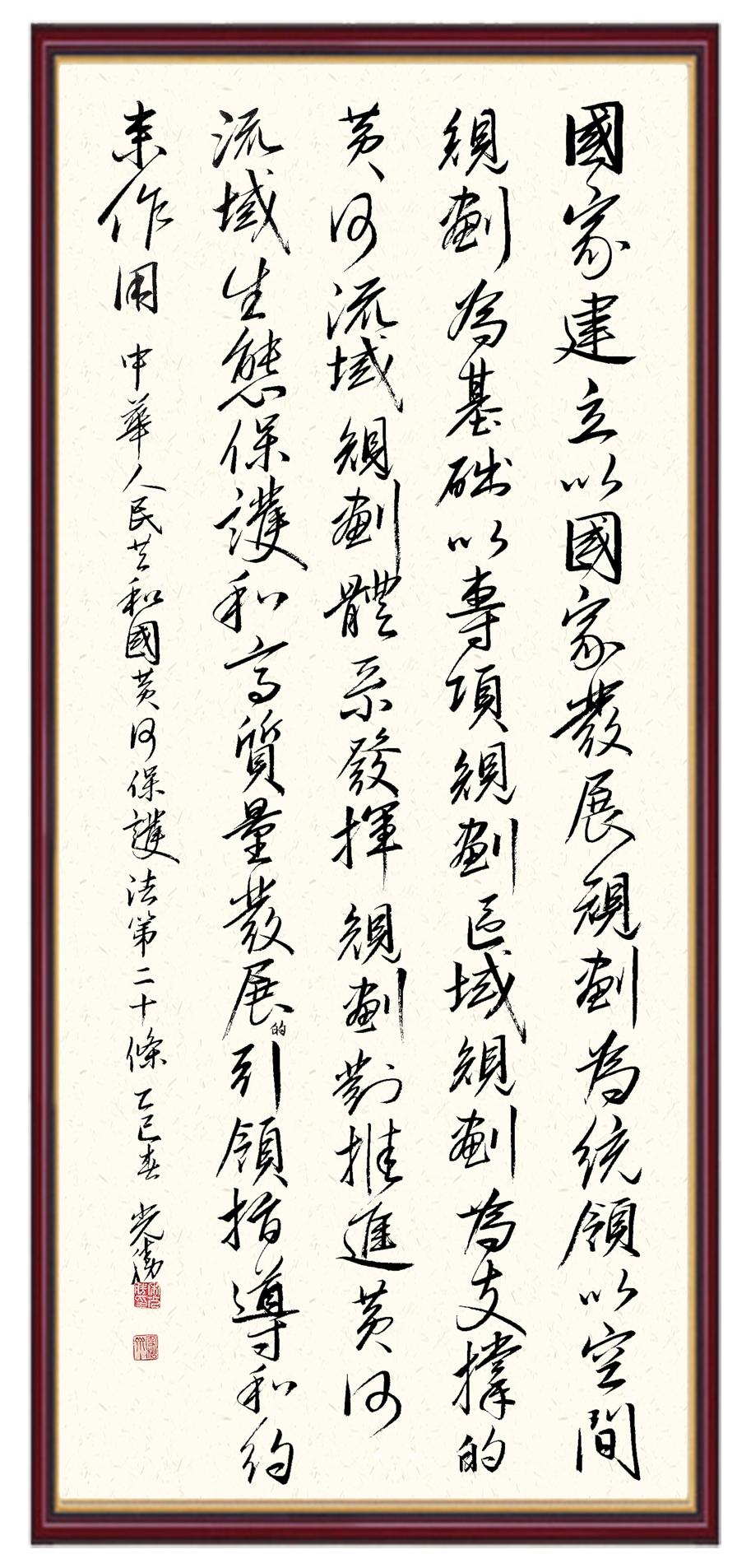 黃河寧,天下平。黃河是中華民族的發(fā)源地和搖籃,保護黃河是事關(guān)中華民族偉大復興的千秋大計。《中華人民共和國黃河保護法》為推進水資源節(jié)約集約利用、保護傳承弘揚黃河文化、推動黃河流域生態(tài)保護和高質(zhì)量發(fā)展提供了有力法治保障。繼書寫《中華人民共和國民法典》《中華人民共和國憲法》《中華人民共和國澳門特別行政區(qū)基本法》《中華人民共和國香港特別行政區(qū)基本法》《中華人民共和國國旗法》《中華人民共和國國徽法》《中華人民共和國國歌法》《中華人民共和國法官法》等法律法規(guī)之后,法制日報社聯(lián)合沿黃九?。▍^(qū))司法廳、書法家協(xié)會,將筆端對準《中華人民共和國黃河保護法》。