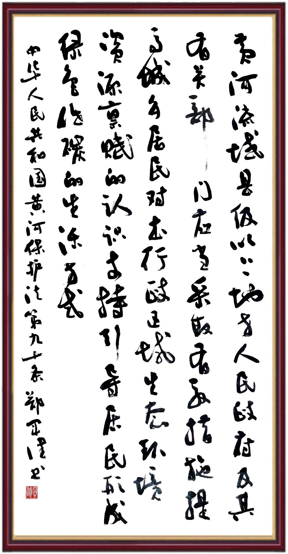 黃河寧,天下平。黃河是中華民族的發(fā)源地和搖籃,保護黃河是事關(guān)中華民族偉大復(fù)興的千秋大計?!吨腥A人民共和國黃河保護法》為推進水資源節(jié)約集約利用、保護傳承弘揚黃河文化、推動黃河流域生態(tài)保護和高質(zhì)量發(fā)展提供了有力法治保障。繼書寫《中華人民共和國民法典》《中華人民共和國憲法》《中華人民共和國澳門特別行政區(qū)基本法》《中華人民共和國香港特別行政區(qū)基本法》《中華人民共和國國旗法》《中華人民共和國國徽法》《中華人民共和國國歌法》《中華人民共和國法官法》等法律法規(guī)之后,法制日報社聯(lián)合沿黃九?。▍^(qū))司法廳、書法家協(xié)會,將筆端對準(zhǔn)《中華人民共和國黃河保護法》。