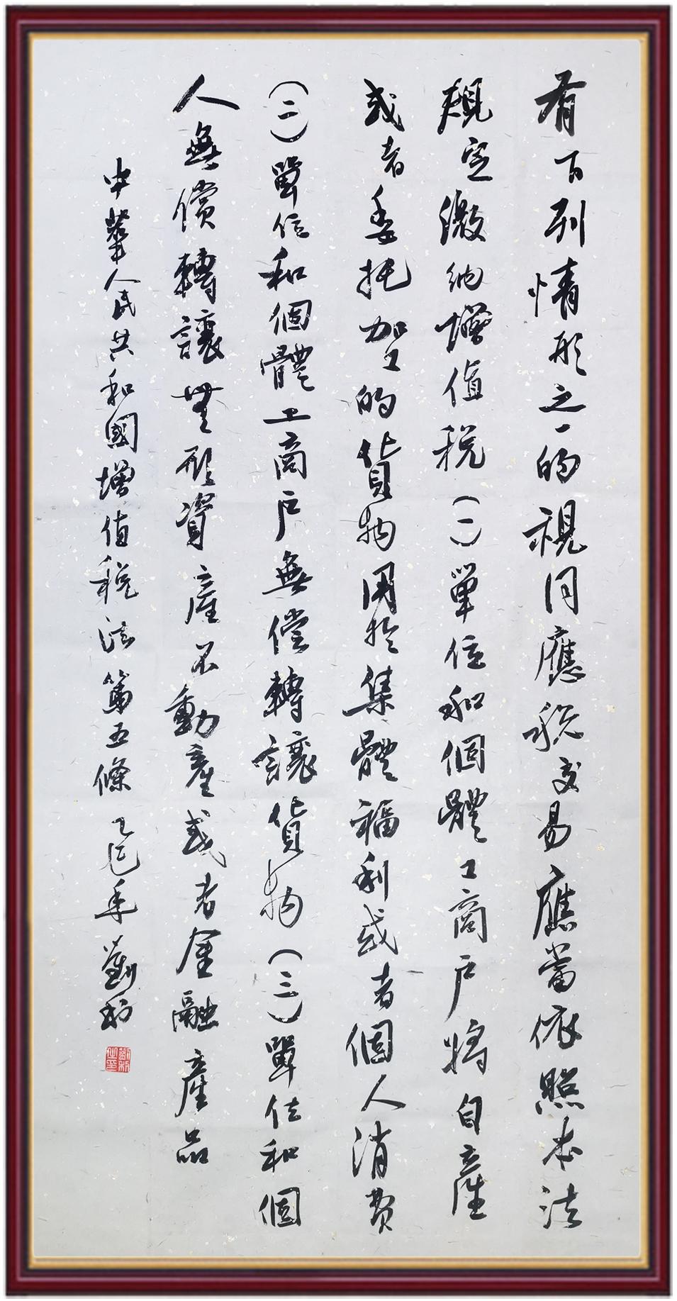 稅收一頭連著國計,一頭連著民生。全面推進依法治稅,是全面依法治國基本方略在稅收領(lǐng)域的集中體現(xiàn)?!吨腥A人民共和國增值稅法》將于2026年1月1日起施行,對全面落實稅收法定原則、健全有利于高質(zhì)量發(fā)展的增值稅制度、規(guī)范增值稅的征收和繳納、保護納稅人合法權(quán)益具有重要意義。繼書寫《中華人民共和國民法典》《中華人民共和國憲法》《中華人民共和國國旗法》《中華人民共和國國徽法》《中華人民共和國國歌法》《中華人民共和國法官法》《中華人民共和國黃河保護法》等法律法規(guī)之后,法制日報社將筆端對準《中華人民共和國增值稅法》。