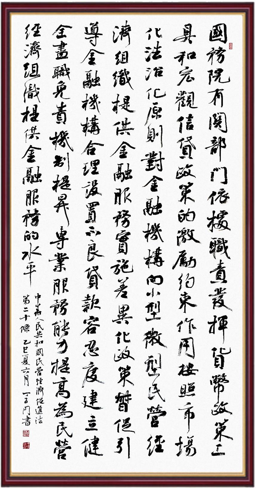 《中華人民共和國(guó)民營(yíng)經(jīng)濟(jì)促進(jìn)法》自今年5月20日起施行。作為我國(guó)首部專門關(guān)于民營(yíng)經(jīng)濟(jì)發(fā)展的基礎(chǔ)性法律,民營(yíng)經(jīng)濟(jì)促進(jìn)法將支持和保障民營(yíng)經(jīng)濟(jì)發(fā)展的法律制度融入中國(guó)特色社會(huì)主義法律體系,具有重大的法治意義,為促進(jìn)民營(yíng)經(jīng)濟(jì)持續(xù)、健康、高質(zhì)量發(fā)展提供了堅(jiān)實(shí)的法治保障。為更好地學(xué)習(xí)、宣傳、貫徹這部法律,法治日?qǐng)?bào)社聯(lián)合司法部普法與依法治理局,開展“‘書·法’系列活動(dòng)之書寫《中華人民共和國(guó)民營(yíng)經(jīng)濟(jì)促進(jìn)法》”活動(dòng)。