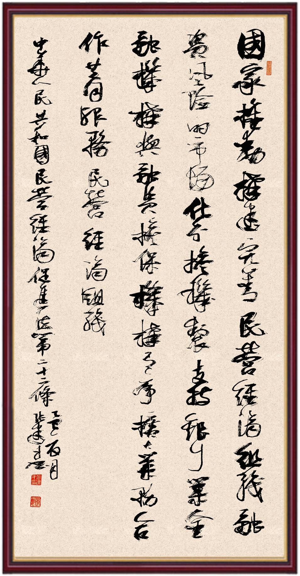 2020年7月11日,由法治日報(bào)社主辦、法報(bào)文化傳媒(北京)有限公司和北京千音文化傳媒有限公司聯(lián)合承辦的“書·法”系列活動(dòng)正式啟動(dòng)?!皶しā被顒?dòng)旨在為創(chuàng)新法治宣傳教育,多開一點(diǎn)腦洞、多花一點(diǎn)心思、多出一點(diǎn)力量、多作一點(diǎn)貢獻(xiàn),引領(lǐng)和推動(dòng)更多的人拿起筆來學(xué)法、寫法,在不斷“書·法”過程中,提升自身的法治素養(yǎng),在全社會(huì)弘揚(yáng)法治精神。先后書寫《中華人民共和國民法典》《中華人民共和國憲法》《中華人民共和國澳門特別行政區(qū)基本法》《中華人民共和國香港特別行政區(qū)基本法》《中華人民共和國國旗法》《中華人民共和國國徽法》《中華人民共和國國歌法》《中華人民共和國法官法》《中華人民共和國黃河保護(hù)法》等19部法律法規(guī)。