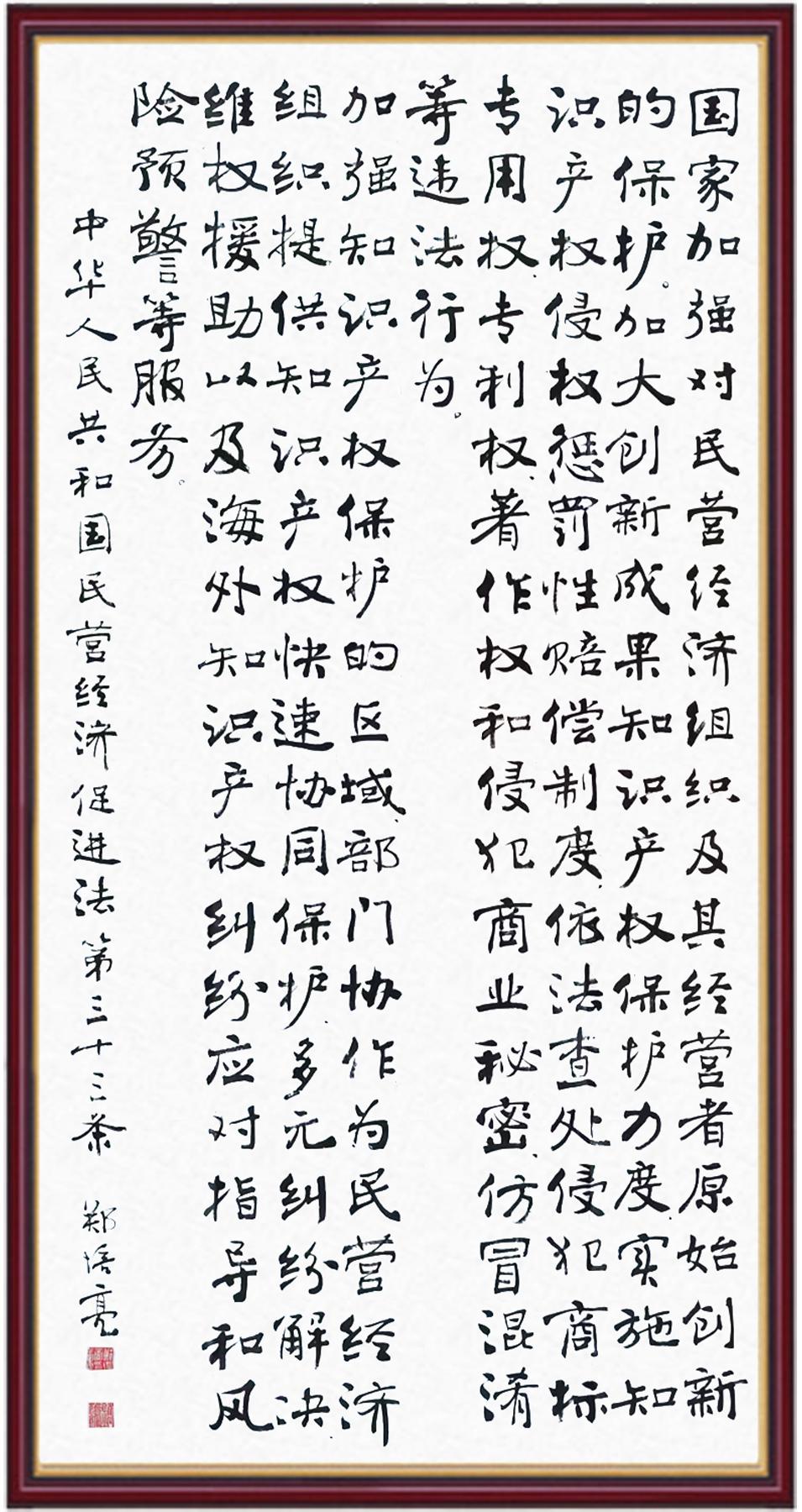《中華人民共和國民營經(jīng)濟促進法》自今年5月20日起施行。作為我國首部專門關于民營經(jīng)濟發(fā)展的基礎性法律,民營經(jīng)濟促進法將支持和保障民營經(jīng)濟發(fā)展的法律制度融入中國特色社會主義法律體系,具有重大的法治意義,為促進民營經(jīng)濟持續(xù)、健康、高質(zhì)量發(fā)展提供了堅實的法治保障。為更好地學習、宣傳、貫徹這部法律,法治日報社聯(lián)合司法部普法與依法治理局,開展“‘書·法’系列活動之書寫《中華人民共和國民營經(jīng)濟促進法》”活動。