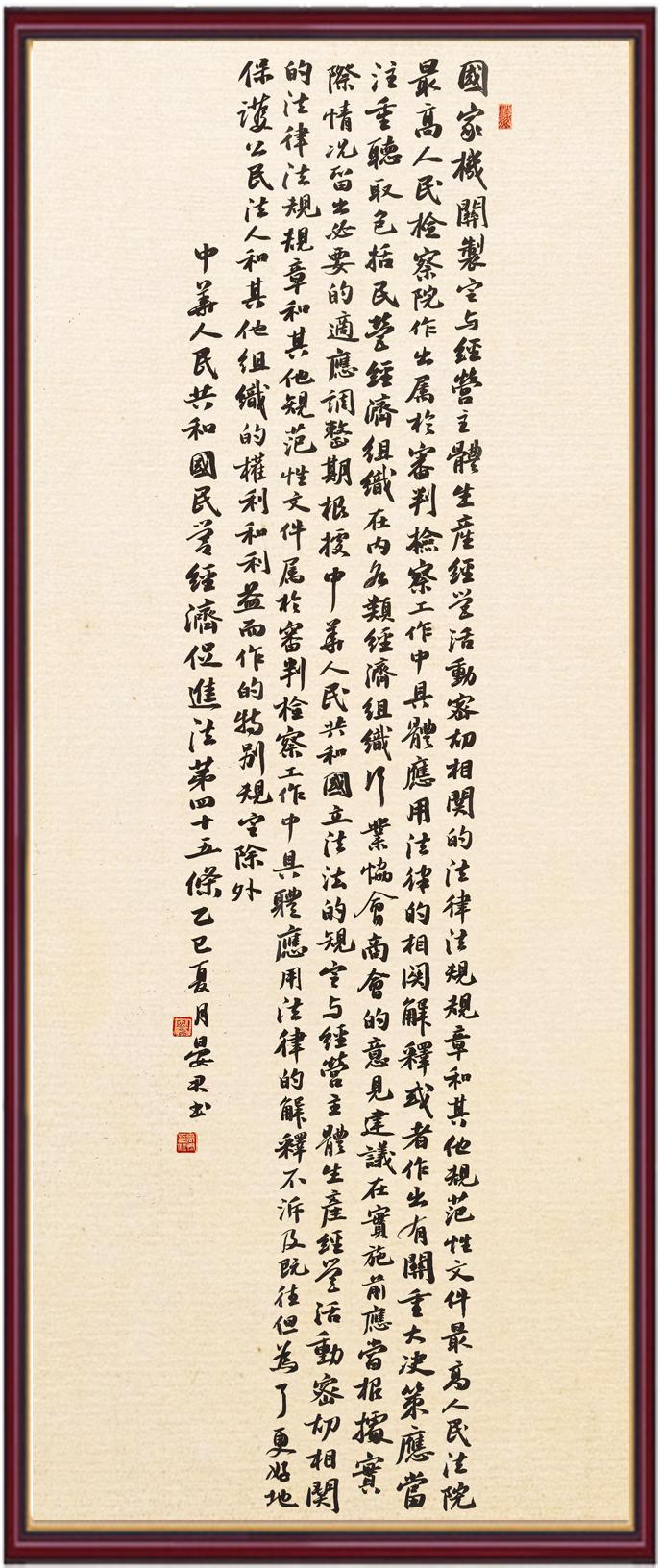 《中華人民共和國民營經(jīng)濟(jì)促進(jìn)法》自今年5月20日起施行。作為我國首部專門關(guān)于民營經(jīng)濟(jì)發(fā)展的基礎(chǔ)性法律,民營經(jīng)濟(jì)促進(jìn)法將支持和保障民營經(jīng)濟(jì)發(fā)展的法律制度融入中國特色社會(huì)主義法律體系,具有重大的法治意義,為促進(jìn)民營經(jīng)濟(jì)持續(xù)、健康、高質(zhì)量發(fā)展提供了堅(jiān)實(shí)的法治保障。為更好地學(xué)習(xí)、宣傳、貫徹這部法律,法治日?qǐng)?bào)社聯(lián)合司法部普法與依法治理局,開展“‘書·法’系列活動(dòng)之書寫《中華人民共和國民營經(jīng)濟(jì)促進(jìn)法》”活動(dòng)。
