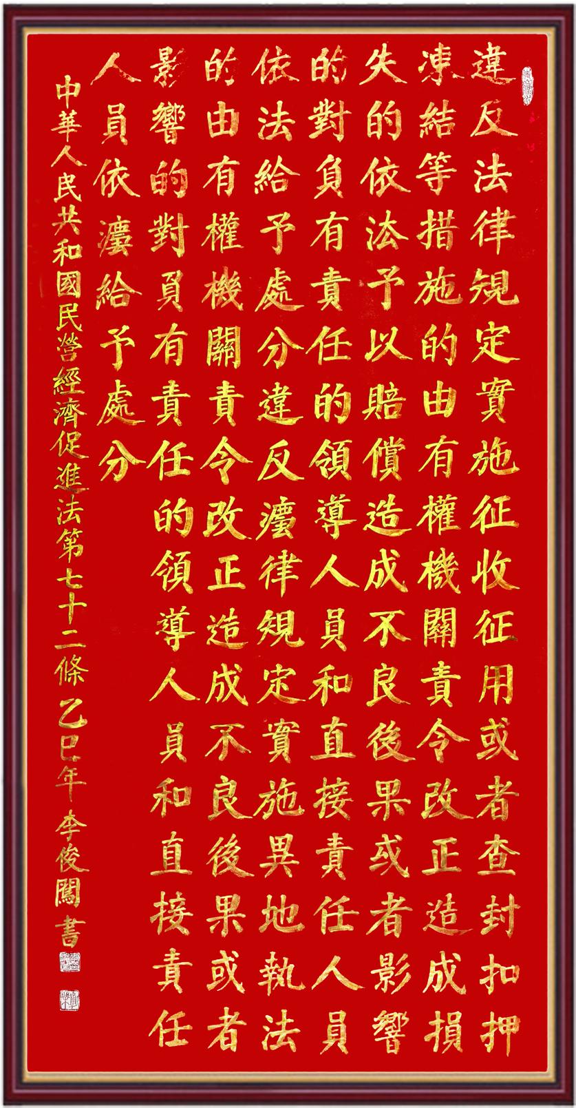 《中華人民共和國民營經(jīng)濟促進法》自今年5月20日起施行。作為我國首部專門關于民營經(jīng)濟發(fā)展的基礎性法律,民營經(jīng)濟促進法將支持和保障民營經(jīng)濟發(fā)展的法律制度融入中國特色社會主義法律體系,具有重大的法治意義,為促進民營經(jīng)濟持續(xù)、健康、高質(zhì)量發(fā)展提供了堅實的法治保障。為更好地學習、宣傳、貫徹這部法律,法治日報社聯(lián)合司法部普法與依法治理局,開展“‘書·法’系列活動之書寫《中華人民共和國民營經(jīng)濟促進法》”活動。