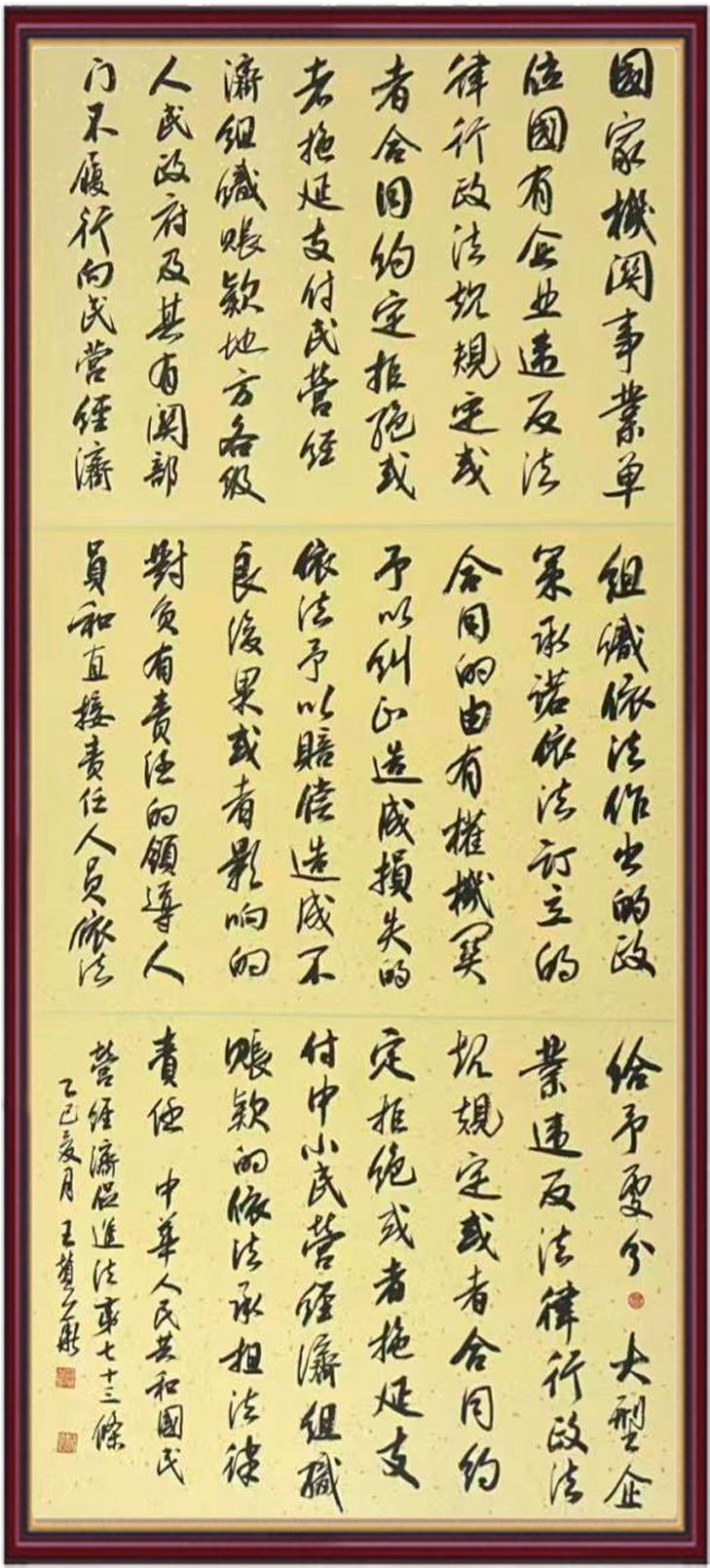 《中華人民共和國(guó)民營(yíng)經(jīng)濟(jì)促進(jìn)法》自今年5月20日起施行。作為我國(guó)首部專門關(guān)于民營(yíng)經(jīng)濟(jì)發(fā)展的基礎(chǔ)性法律,民營(yíng)經(jīng)濟(jì)促進(jìn)法將支持和保障民營(yíng)經(jīng)濟(jì)發(fā)展的法律制度融入中國(guó)特色社會(huì)主義法律體系,具有重大的法治意義,為促進(jìn)民營(yíng)經(jīng)濟(jì)持續(xù)、健康、高質(zhì)量發(fā)展提供了堅(jiān)實(shí)的法治保障。為更好地學(xué)習(xí)、宣傳、貫徹這部法律,法治日?qǐng)?bào)社聯(lián)合司法部普法與依法治理局,開(kāi)展“‘書·法’系列活動(dòng)之書寫《中華人民共和國(guó)民營(yíng)經(jīng)濟(jì)促進(jìn)法》”活動(dòng)。
