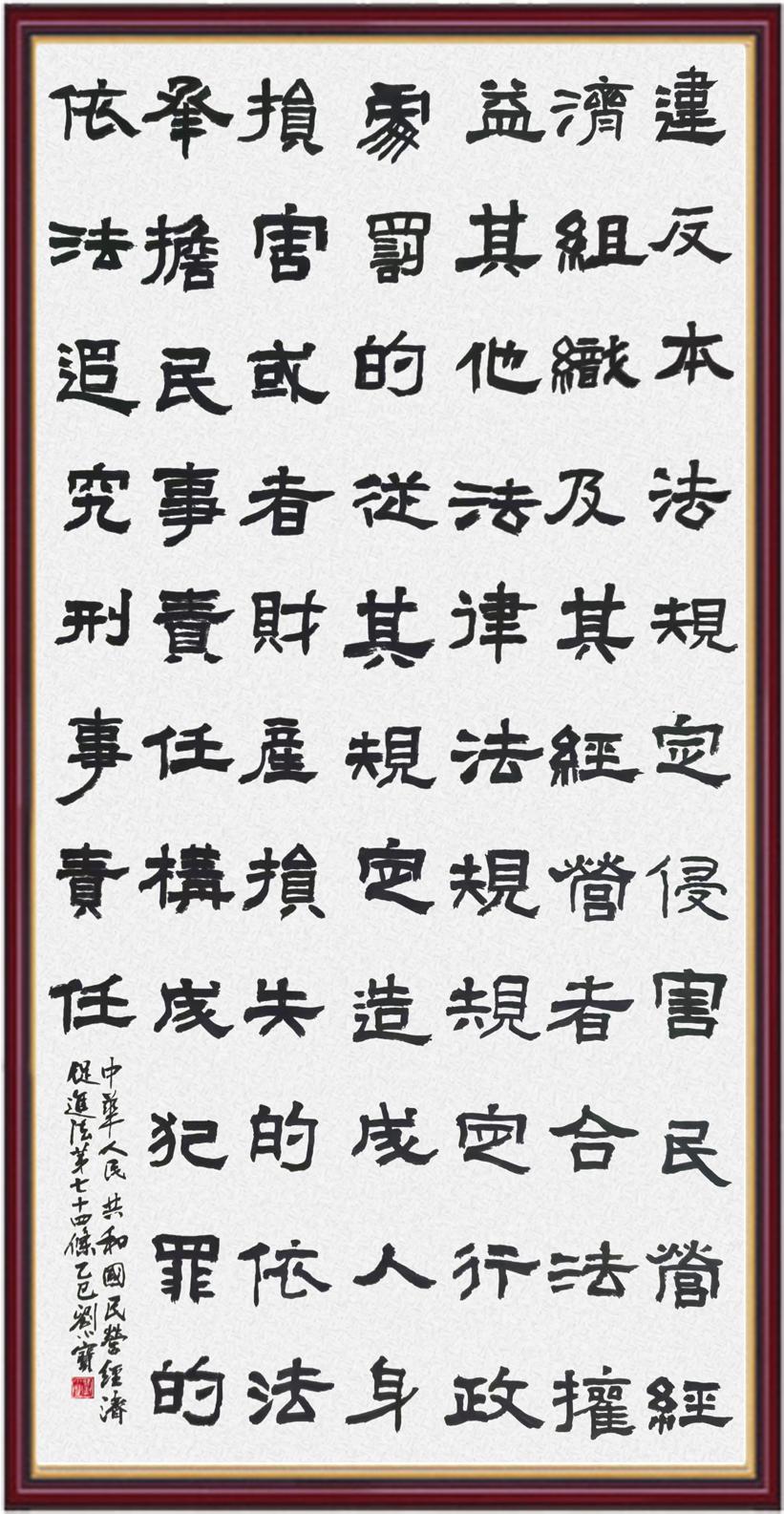 2020年7月11日,由法治日報社主辦、法報文化傳媒(北京)有限公司和北京千音文化傳媒有限公司聯(lián)合承辦的“書·法”系列活動正式啟動?!皶しā被顒又荚跒閯?chuàng)新法治宣傳教育,多開一點(diǎn)腦洞、多花一點(diǎn)心思、多出一點(diǎn)力量、多作一點(diǎn)貢獻(xiàn),引領(lǐng)和推動更多的人拿起筆來學(xué)法、寫法,在不斷“書·法”過程中,提升自身的法治素養(yǎng),在全社會弘揚(yáng)法治精神。先后書寫《中華人民共和國民法典》《中華人民共和國憲法》《中華人民共和國澳門特別行政區(qū)基本法》《中華人民共和國香港特別行政區(qū)基本法》《中華人民共和國國旗法》《中華人民共和國國徽法》《中華人民共和國國歌法》《中華人民共和國法官法》《中華人民共和國黃河保護(hù)法》等19部法律法規(guī)。