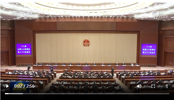 新華社北京12月27日電?十三屆全國人大常委會第三十八次會議27日上午在北京人民大會堂舉行第一次全體會議。栗戰(zhàn)書委員長主持。