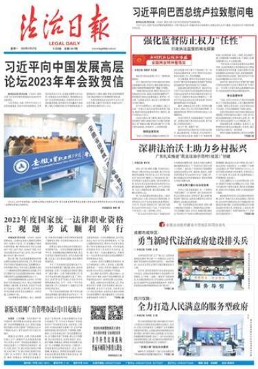 2022年11月,湖北省司法廳建立行政執(zhí)法監(jiān)督問題線索收集、案件辦理督辦、考核評價與結(jié)果運用“三項機制”,優(yōu)化行政執(zhí)法監(jiān)督工作機制,提升監(jiān)督質(zhì)效。