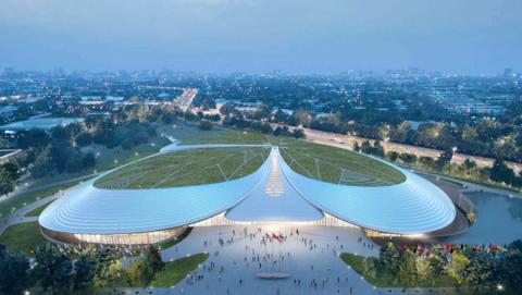 中關(guān)村論壇永久會址主會場效果圖。 北京建院供圖