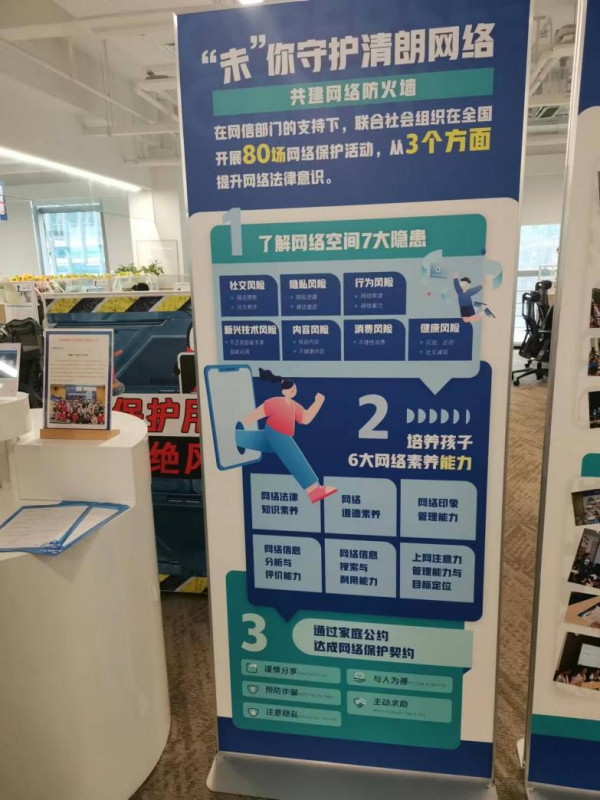 營(yíng)地內(nèi)的網(wǎng)絡(luò)保護(hù)法治宣傳展架展室。趙暖芷 攝