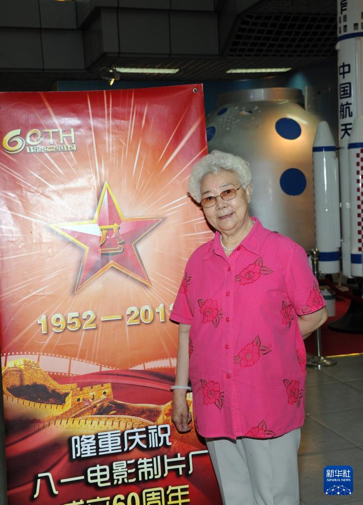 2012年8月1日,田華在八一電影制片廠(chǎng)“廠(chǎng)史館”前留影。新華社發(fā)