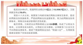 網(wǎng)絡空間是億萬民眾共同的精神家園。數(shù)據(jù)顯示,截至2024年6月,我國網(wǎng)民規(guī)模近11億人(10.9967億人),互聯(lián)網(wǎng)普及率達78%。建立健全網(wǎng)絡綜合治理體系、營造清朗的網(wǎng)絡空間、建設良好的網(wǎng)絡生態(tài)十分重要。