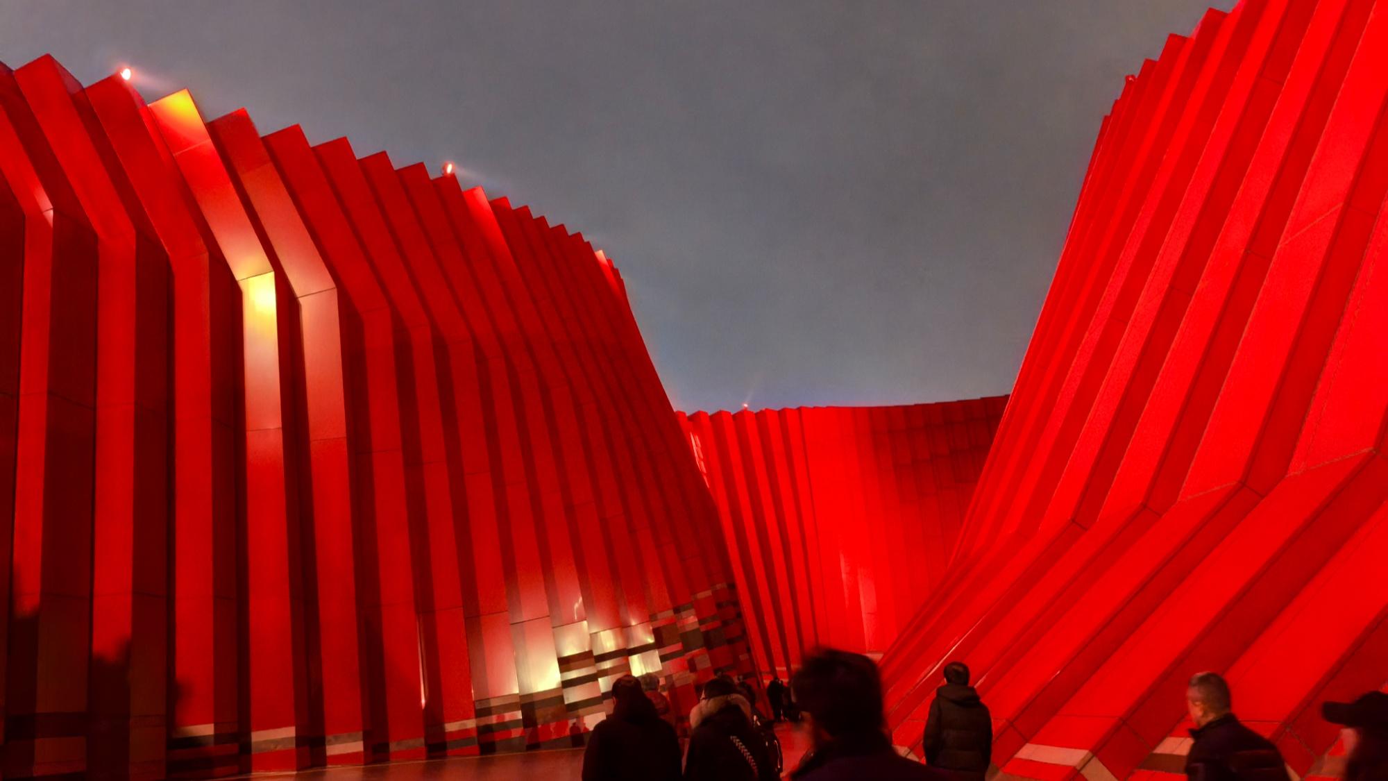 全國(guó)首個(gè)長(zhǎng)征主題全域行浸式數(shù)字體驗(yàn)館“紅飄帶”。(記者費(fèi)權(quán)攝)