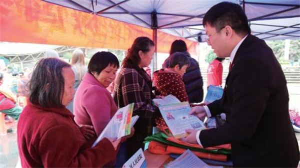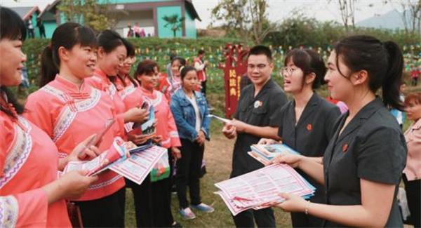 2024年3月30日,河池市東蘭縣人民法院組織青年黨員干警向群眾開展法治宣傳活動