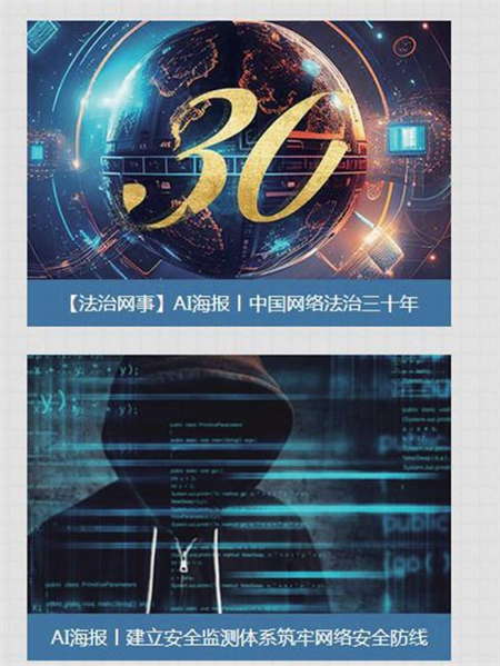 如《中國網(wǎng)絡(luò)法治三十年》一經(jīng)發(fā)布,光明網(wǎng)便推出了數(shù)個長圖解,對中國網(wǎng)絡(luò)法治三十年進(jìn)行全景式概覽。通過長圖形式,細(xì)數(shù)網(wǎng)絡(luò)法治三十年的三個階段、實踐成就、與百姓息息相關(guān)的熱詞等。同時,充分利用前沿人工智能技術(shù),推出系列AI海報和AI繪報告,展示中國網(wǎng)絡(luò)法治三十年的成就和閃光數(shù)據(jù)。