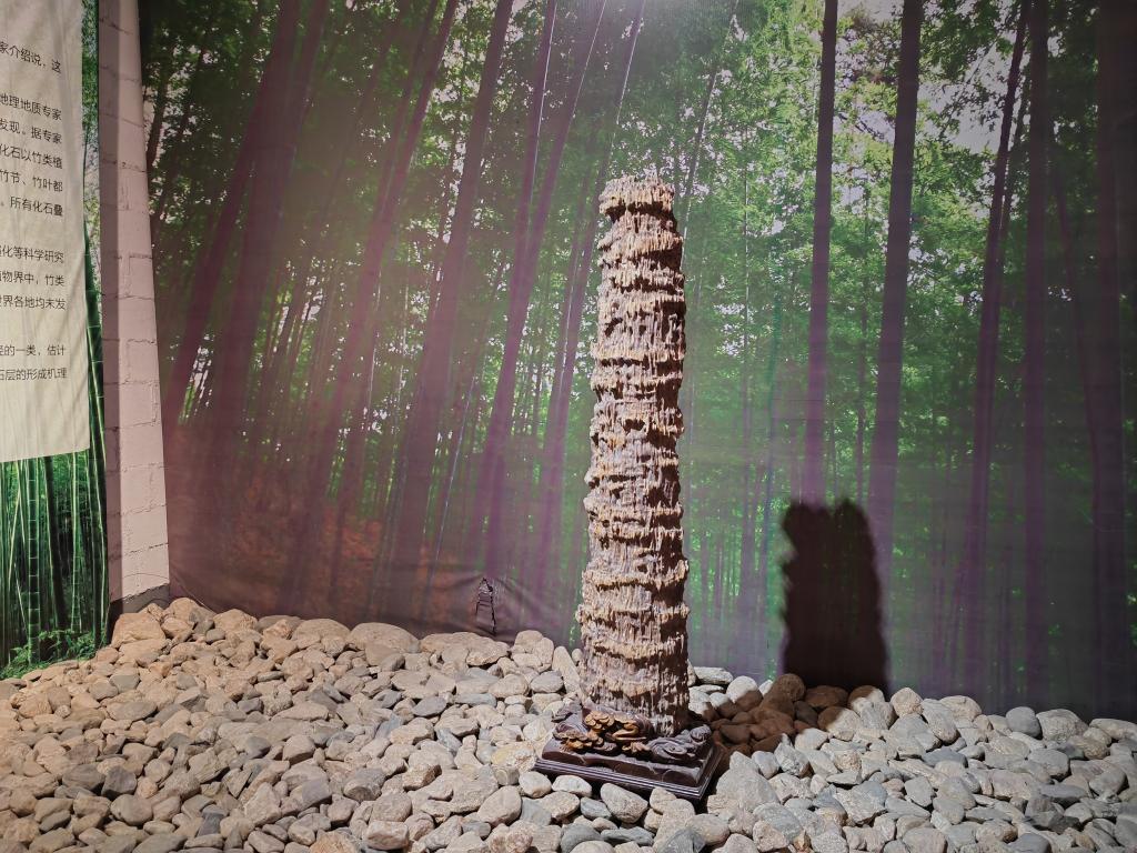 在原木標(biāo)本展廳,一塊跨越萬年時光的竹化石靜靜陳列。燈光下,竹竿依舊挺拔,竹節(jié)棱角分明,葉片脈絡(luò)甚至細(xì)胞纖維都清晰可辨?!斑@些木頭會說話,它們在講述地球的故事?!苯_峰說。
