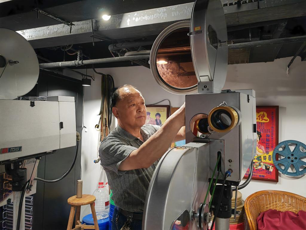 在光影瑯琊·中國百年電影文化體驗館,館長鞏西吉正在調(diào)試?yán)鲜诫娪胺庞硻C(jī)。新華社記者劉錚 攝